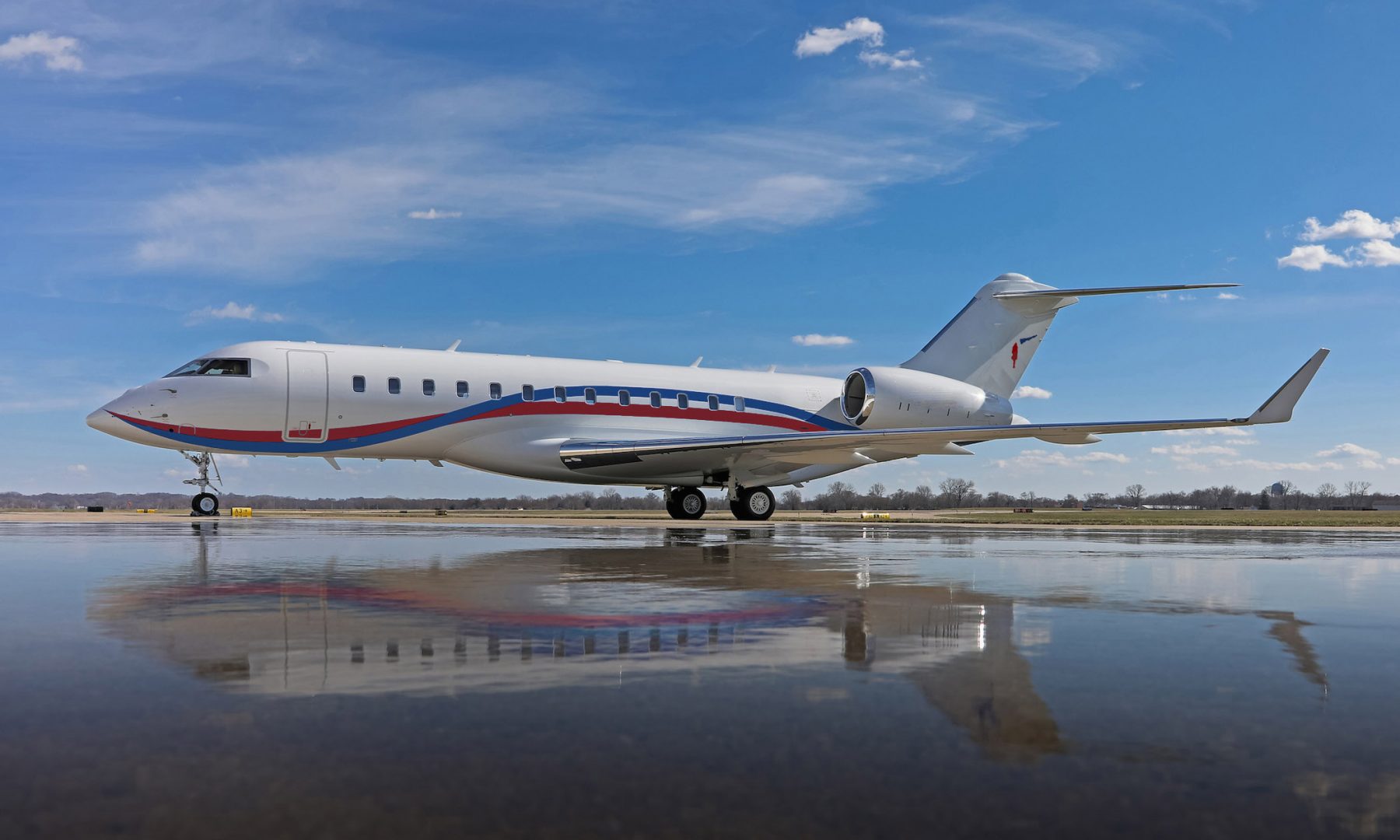 Fresh out of Bombardier’s spray facility in Tucson our clients Global 6000 is looking very sharp in our specification red, white and blue custom paint finish.
